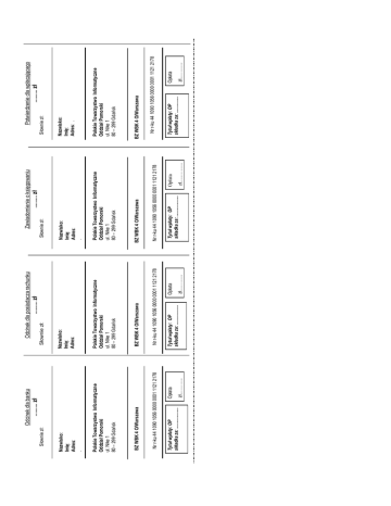 BZ WBK 4 O/Warszawa Nr r-ku 44 1090 1056 0000 0001 1121 2178 Tytuł wpłaty: OP składka za: .................. BZ WBK 4 O/Warszawa Nr r-ku 44 1090 1056 0000 0001 1121 2178 Tytuł wpłaty: OP składka za: ................... zł....…….... zł....…….... Opłata Polskie Towarzystwo Informatyczne Oddział Pomorski ul. Nike 1 80 – 299 Gdańsk Polskie Towarzystwo Informatyczne Oddział Pomorski ul. Nike 1 80 – 299 Gdańsk Opłata Nazwisko: Imię: Adres: Słownie zł: ......... zł ......... zł Nazwisko: Imię: Adres: . Słownie zł: Odcinek dla posiadacza rachunku Odcinek dla banku Tytuł wpłaty: OP składka za: ................... zł....…….... Opłata Nr r-ku 44 1090 1056 0000 0001 1121 2178 BZ WBK 4 O/Warszawa Polskie Towarzystwo Informatyczne Oddział Pomorski ul. Nike 1 80 – 299 Gdańsk Nazwisko: Imię: Adres: . Słownie zł: ......... zł Zawiadomienie o księgowaniu ......... zł Tytuł wpłaty: OP składka za: ............... zł....…….... Opłata Nr r-ku 44 1090 1056 0000 0001 1121 2178 BZ WBK 4 O/Warszawa Polskie Towarzystwo Informatyczne Oddział Pomorski ul. Nike 1 80 – 299 Gdańsk Nazwisko: Imię: Adres: . Słownie zł: Potwierdzenie dla wpłacającego