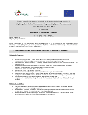 Specjalisty ds. Informacji i Promocji Nr ref. CPE – VII – 4/2011