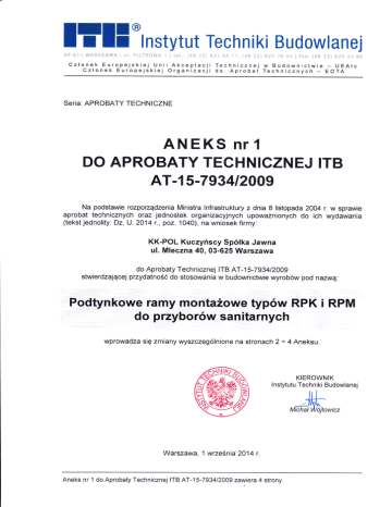 PrzedłuŻa się termin waznościAprobaty Technicznej lTB AT-15-793412009 do 04 września