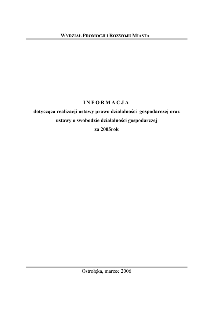 INFORMACJA dotycząca realizacji ustawy prawo działalności