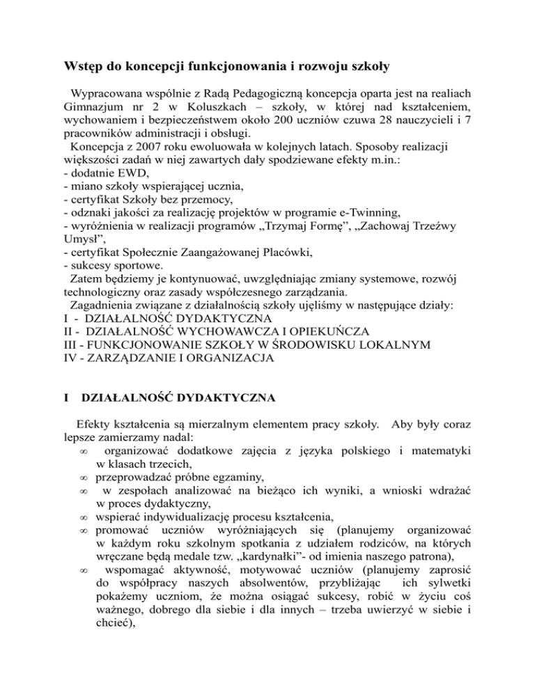Wstęp do koncepcji funkcjonowania i rozwoju szkoły