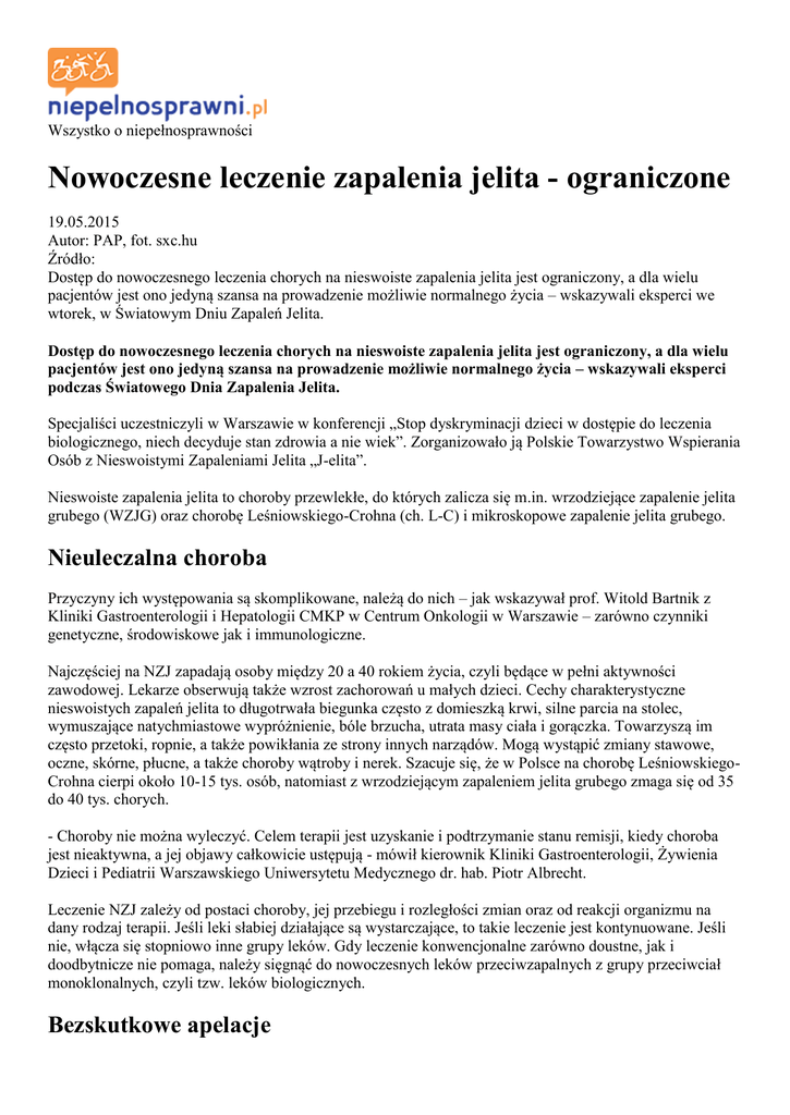 Nowoczesne leczenie zapalenia jelita - ograniczone