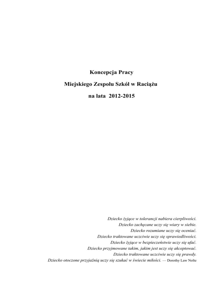 PRZYKŁADOWA KONCEPCJA PRACY SZKOŁY