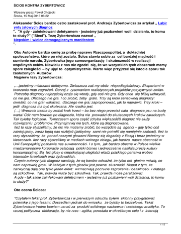 Gdyby pan Zybertowicz skierował swoje uwagi do właściwych adresatów - jego tekst byłby