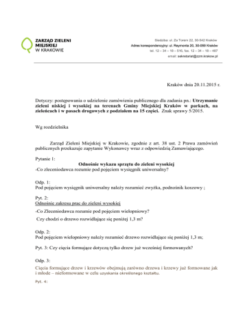 Kraków dnia 20.11.2015 r. Dotyczy: postępowania o udzielenie
