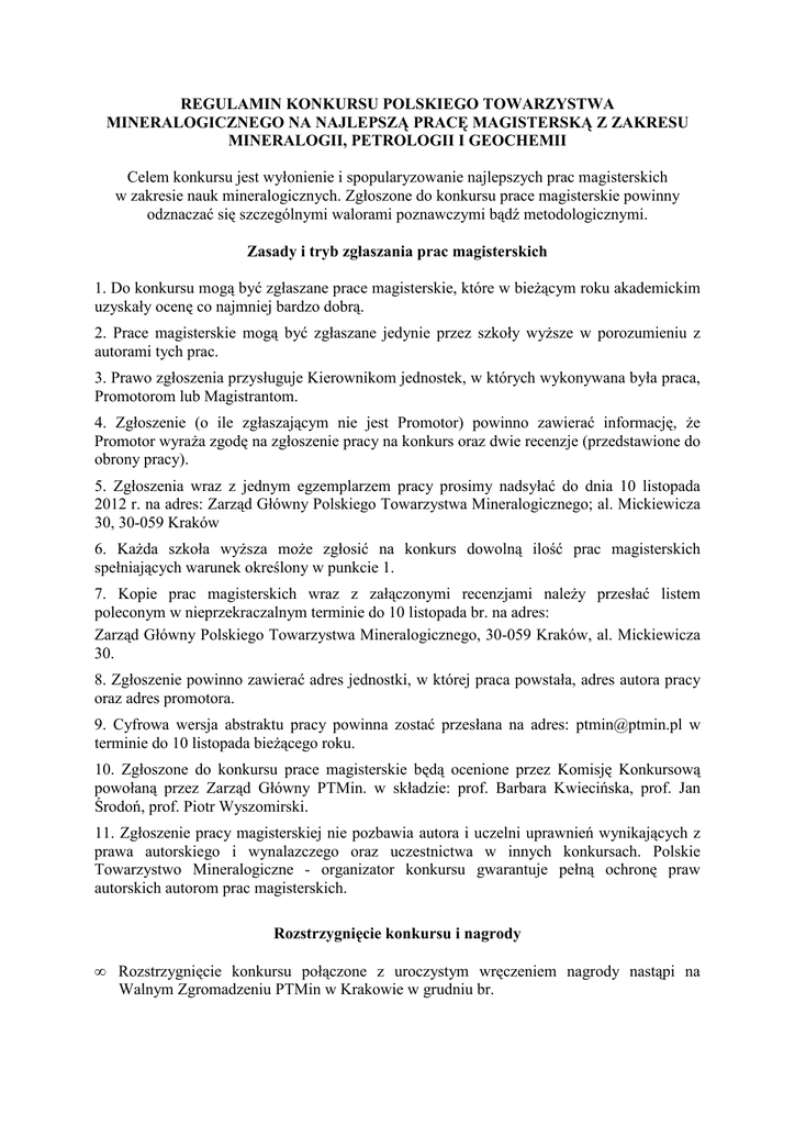 Regulamin konkursu - Polskie Towarzystwo Mineralogiczne
