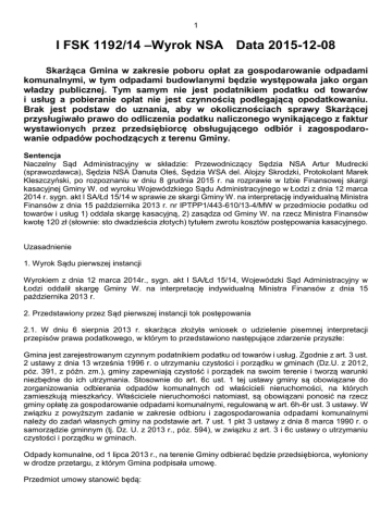 I FSK 1192/14 –Wyrok NSA Data 2015-12-08