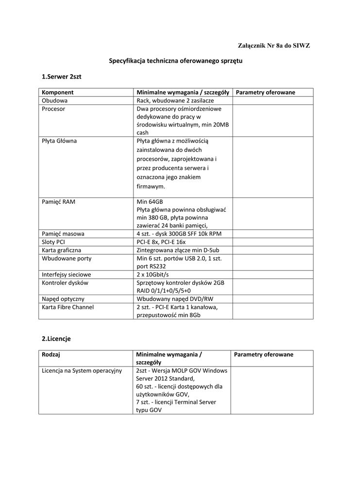 Specyfikacja techniczna oferowanego sprzętu 1.Serwer 2szt 2