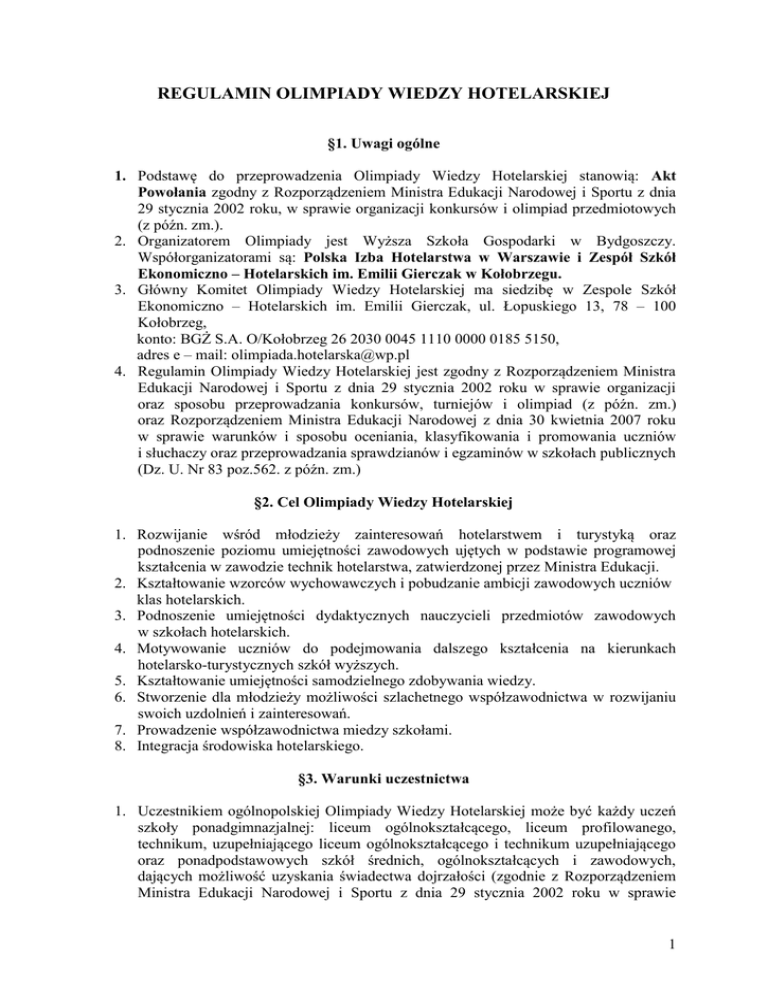 regulamin olimpiady wiedzy hotelarskiej