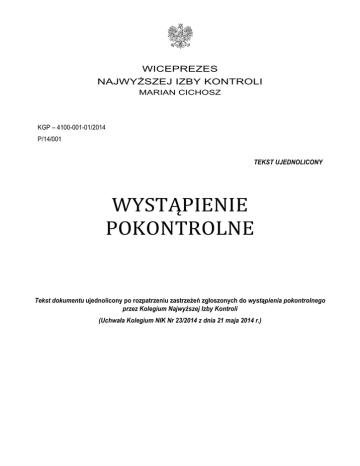 Wystąpienie - NIK-u. - Najwyższa Izba Kontroli