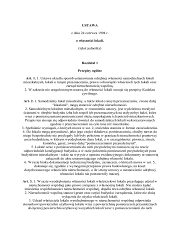 USTAWA z dnia 24 czerwca 1994 r. o własności lokali. (tekst