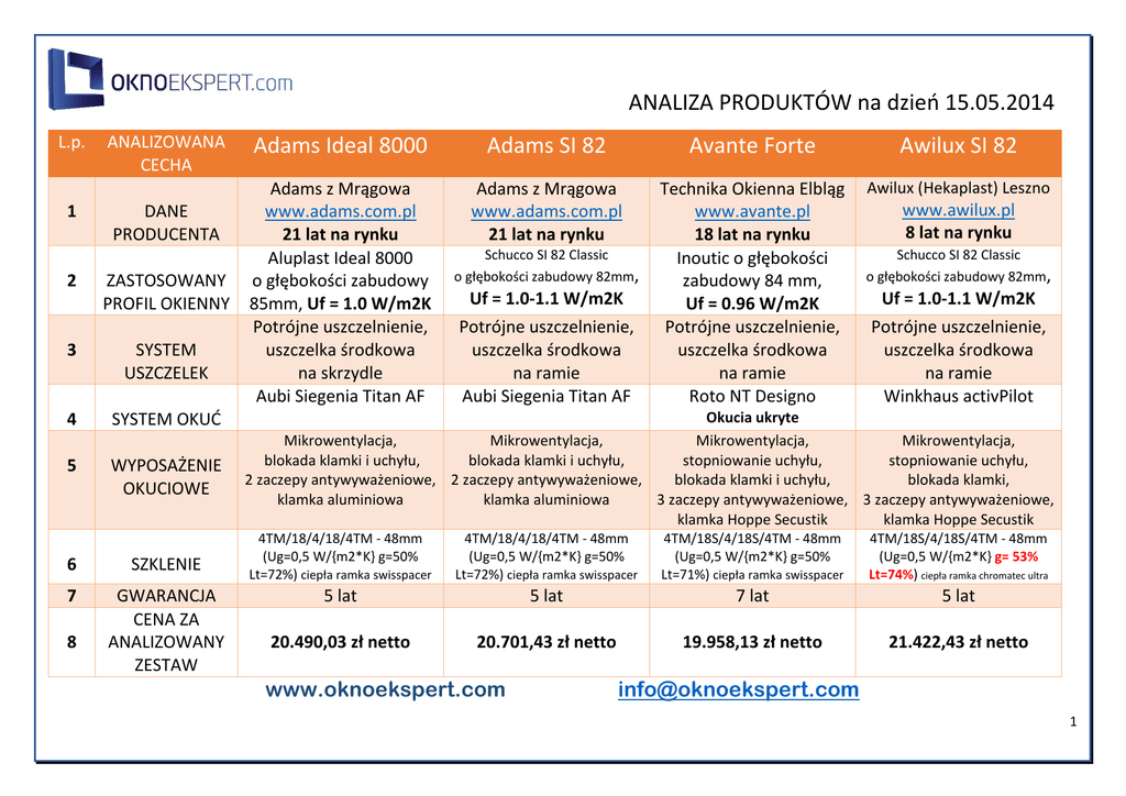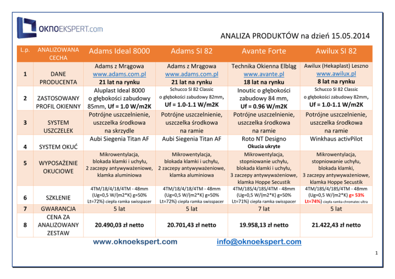 ANALIZA PRODUKTÓW na dzień 15.05.2014