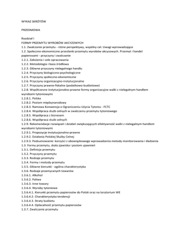 WYKAZ SKRÓTÓW PRZEDMOWA Rozdział I FORMY PRZEMYTU