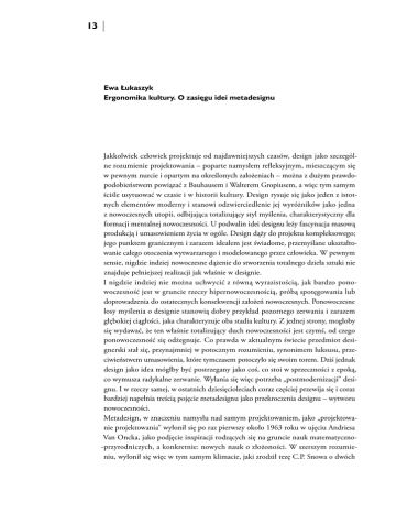 Ewa Łukaszyk Ergonomika kultury. O zasięgu idei metadesignu