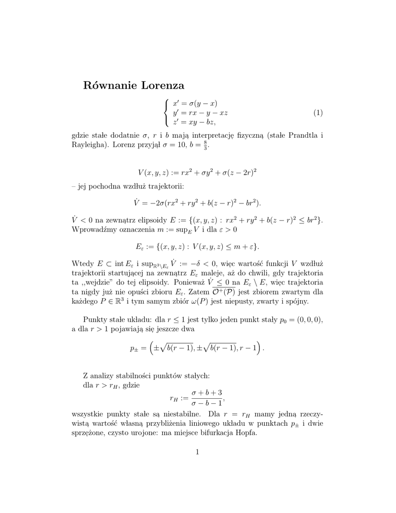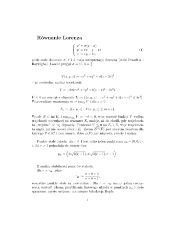 Uklad dynamiczny Lorenza zredukowany do atraktora A ma dwie nastepuj