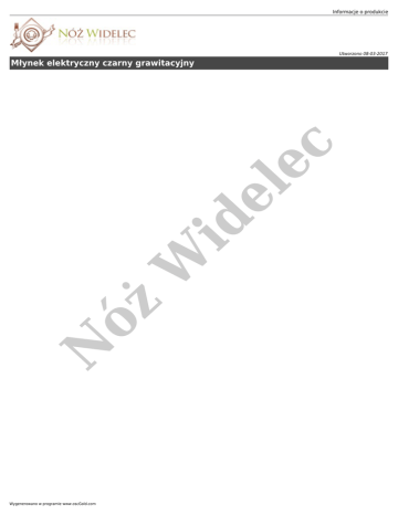 Informacje o produkcie Utworzono 08-03-2017 N óż W id e le c Młynek elektryczny czarny grawitacyjny Wygenerowano w programie www.oscGold.com Cena : 47,65 zł 38,80 zł N óż W id e le c Nr katalogowy : 37777 Producent : Ambition Dostępność : Dostępny Stan magazynowy : bardzo wysoki Średnia ocena : brak recenzji Informacje o produkcie Młynek elektryczny do pieprzu i soli marki Ambition charakteryzuje się nowoczesnym i eleganckim wyglądem oraz precyzją wykonania. Praktyczny i wygodny w użyciu dzięki wyprofilowanym kształtom. Młynek posiada regulację grubości mielenia oraz ceramiczny mechanizm mielący. Obudowa został wykonany ze stali nierdzewnej i akrylu. Młynek działa grawitacyjnie - uruchamia się poprzez pochylenie młynka, nie posiada przycisku. Zasilany na baterie AAA. N óż W id e le c Wymiary: Wys. 24,5 cm Wygenerowano w programie www.oscGold.com