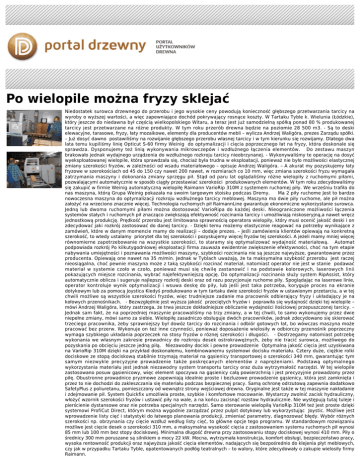 Po wielopile można fryzy sklejać Niedostatek surowca drzewnego do przerobu i jego wysokie ceny powodują konieczność głębszego przetwarzania tarcicy na wyroby o wyższej wartości, a więc zapewniające dochód pokrywający rosnące koszty. W Tartaku Tyble k. Wielunia (Łódzkie), który jeszcze do niedawna był częścią wielkopolskiego Witaru, a teraz jest już samodzielną spółką ponad 80 % produkowanej tarcicy jest przetwarzane na różne produkty. W tym roku przerób drewna będzie na poziomie 28 500 m3. - Są to deski elewacyjne, tarasowe, fryzy, łaty mozaikowe, elementy dla producentów mebli – wylicza Andrzej Waligóra, prezes Zarządu spółki. – Już dosyć dawno postawiliśmy na rozwijanie głębszego przerobu własnej tarcicy i w tym kierunku się rozwijamy. Dlatego dwa lata temu kupiliśmy linię Opticut S-60 firmy Weinig do optymalizacji i cięcia poprzecznego łat na fryzy, która doskonale się sprawdza. Dysponujemy też linią wykonywania mikrowczepów i wzdłużnego łączenia elementów. Do zestawu maszyn brakowało jednak wydajnego urządzenia do wzdłużnego rozkroju tarcicy nieobrzynanej. - Wykonywaliśmy te operację na dosyć wyeksploatowanej wielopile, która sprawdzała się, chociaż była trudna w eksploatacji, ponieważ nie było możliwości elastycznej zmiany szerokości fryzów, w zależności od wsadu materiałowego – opisuje Andrzej Waligóra. – A akurat my pozyskujemy łaty fryzowe w szerokościach od 45 do 150 czy nawet 200 nawet, w rozmiarach co 10 mm, więc zmiana szerokości fryzu wymagała zatrzymania maszyny i dokonania zmiany sprzęgu pił. Stąd od paru lat oglądaliśmy różne wielopiły z ruchomymi piłami, pozwalającymi automatycznie w sposób ciągły przestawiać szerokości produkowanych elementów. W tym roku zdecydowaliśmy się zakupić w firmie Weinig automatyczną wielopiłę Raimann VarioRip 310M z systemem ruchomej piły. We wrześniu trafiła do nas maszyna, którą Grupa Weinig pokazała na swoim targowym stoisku podczas Dremy. Ma 2 piły ruchome Jest to bardzo nowoczesna maszyna do optymalizacji rozkroju wzdłużnego tarcicy meblowej. Maszyna ma dwie piły ruchome, ale pił można założyć na wrzeciono znacznie więcej. Technologia ruchomych pił RaimannLine gwarantuje ekonomiczne wykorzystanie surowca. Jedną lub dwoma ruchomymi piłami można dostosować VarioRipa do każdej deski. Nieograniczone możliwości łączenia systemów stałych i ruchomych pił znacząco zwiększają efektywność rozcinania tarcicy i umożliwiają niskoseryjną,a nawet wręcz jednostkową produkcję. Prędkość przerobu jest limitowana sprawnością operatora wielopiły, który musi ocenić jakość deski i on zdecydować jaki rozkrój zastosować do danej tarcicy. - Dzięki temu możemy elastycznie reagować na potrzeby wynikające z zamówień, które w danym momencie mamy do realizacji – dodaje prezes. – Jeśli zamówienia klientów opiewają na konkretną szerokość, to wtedy ustalamy priorytet dla tej szerokości i pozyskujemy więcej fryzów tej szerokości. A jeżeli mamy mniej więcej równomierne zapotrzebowanie na wszystkie szerokości, to staramy się optymalizować wydajność materiałową. Automat podpowiada rozkrój Po kilkutygodniowej eksploatacji firma zauważa ewidentnie zwiększenie efektywności, choć na tym etapie nabywania umiejętności i poznawania możliwości maszyny, szybkości rozcinania nie są jeszcze najwyższe, gwarantowane przez producenta. Opiewają one nawet na 35 m/min. Jednak w Tyblach uważają, że ta maksymalna szybkość przerobu jest raczej nieosiągalna, choć pewnie maszyna może z taką szybkości rozcinać materiał, natomiast operator nie jest w stanie podawać materiał w systemie czoło w czoło, ponieważ musi się chwilę zastanowić i na podstawie kolorowych, laserowych linii pokazujących miejsce rozcinania, wybrać najefektywniejszą opcję. Do optymalizacji rozcinania służy system RipAssist, który automatycznie oblicza i sugeruje najlepszy rozkrój deski oraz od razu pozycjonuje ruchome piły. Spoglądając na laserowe linie, operator kontroluje wynik optymalizacji i wsuwa deskę do piły, lub jeśli jest taka potrzeba, koryguje proces na ekranie dotykowym lub za pomocą Joystica Kiedyś produkowano w tym tartaku dwie szerokości fryzów w ustawionym przetarciu, a w tej chwili możliwe są wszystkie szerokości fryzów, więc trudniejsze zadanie ma pracownik odbierający fryzy i układający je na kołowych przenośnikach. - Bezwzględnie jest wyższa jakość przeciętych fryzów i poprawiła się wydajność dzięki tej wielopile – mówi Andrzej Waligóra, który zastrzega, że trwa jeszcze dokładniejsze obliczanie wydajności ilościowej przepuszczonej tarcicy. – Jednak sam fakt, że na poprzedniej maszynie pracowaliśmy na trzy zmiany, a w tej chwili, to samo wykonujemy przez dwie niepełne zmiany, mówi samo za siebie. Wielopiłę zasadniczo obsługuje dwóch pracowników, jednak zdecydowano się skierować trzeciego pracownika, żeby sprawniejszy był dowóz tarcicy do rozcinania i odbiór gotowych łat, bo wówczas maszyna może pracować bez przerw. Wykonuje on też inne czynności, ponieważ doposażenie wielosiły w odbiorczy przenośnik poprzeczny wymaga szybkiego układania poprzeczek na stosy fryzów o róznej szerokości i długości. - Dostrzegamy natomiast potrzebę wykonania we własnym zakresie prowadnicy do rozkroju desek ostrokrawężnych, żeby nie tracić surowca, możliwego do pozyskania po obcięciu jeszcze jedną piłą. Niezawodny docisk i pewne prowadzenie Optymalna jakość cięcia jest uzyskiwana na VarioRip 310M dzięki na przykład doskonałemu, kombinowanemu systemowi docisku materiału. Cztery duże, ciężkie rolki dociskowe ze stopą dociskową stabilnie trzymają materiał na gąsienicy transportowej o szerokości 340 mm, gwarantując tym samym niezwykle precyzyjne prowadzenie także poskręcanych elementów z naprężenia