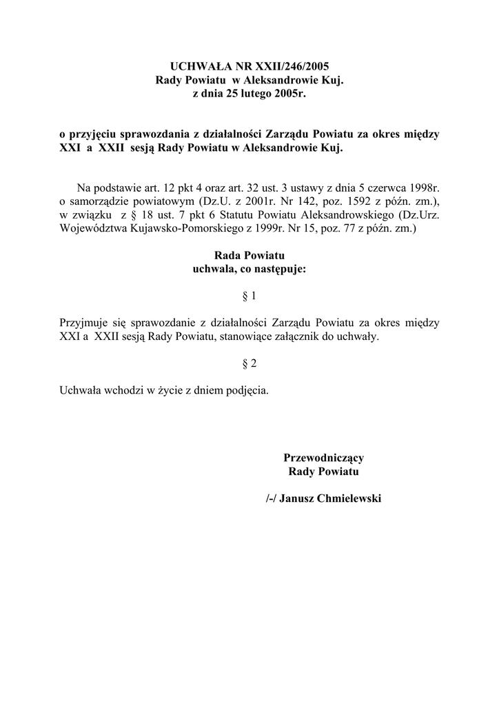 UCHWAŁA NR XXII/246/2005 Rady Powiatu w Aleksandrowie Kuj. z