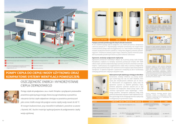 Warianty montażu pompy ciepła do przygotowywania c.w.u. 4 5 Ciepło odpadowe jest ciepłem użytkowym. Seryjny wymiennik ciepła (tylko AWP 30HLW i BWP 30HLW) pompy ciepła do podgrzewu c.w.u. umożliwia bezpośrednie przyłączenie do źródła ciepła, np. instalacji solarnej lub kotła grzewczego. 4 7 6 1 AWP 30HLW / LWP 300W 2 3 BWP 30H / BWP 30HLW BWP 20A Przyłącze przewodu powietrznego dla różnych zakresów stosowania 8 9 W celu ustawienia pompy ciepła do podgrzewu c.w.u. idealna jest piwnica z temperaturą całoroczną powyżej 10 °C. Wysokowydajny wentylator promieniowy oraz seryjne króćce rurowe powietrza pompy ciepła do przygotowania c.w.u. marki Dimplex umożliwiają indywidualne przyłączenie kierownic powietrza z maksymalną długością przewodu powietrznego 10 m. Umożliwia to dowolny wybór miejsca ustawienia, poprzez zmienność prowa- Osuszanie w trybie powietrza obiegowego. Osuszone powietrze w pomieszczeniach gospodarczych przyczynia się do suszenia prania i zapobiega szkodom spowodowanym wilgocią. dzenia przewodów powietrznych otwiera się wiele możliwości zastosowań. Kompaktowa pompa ciepła solanka/woda z zabudowanym pod nią buforem w kombinacji z kompaktowym urządzeniem do wentylacji wywiewnej pomieszczeń Ogrzewanie, wentylacja i podgrzewanie ciepłej wody Ogrzewanie pomieszczeń mieszkalnych odbywa się za pomocą pompy ciepła Dimplex. 1 Kompaktowa pompa ciepła solanka/woda 4 Nawiewnik świeżego powietrza 8 System ogrzewania powierzchniowego 2 Bufor PSP 100E 5 Wywiewnik w pomieszczeniach odpływowych 9 Kolektor „solanki” 3 Urządzenie kompaktowe do wentylacji wywiewnej 6 Rozdzielacz odpływu budynku i wykorzystuje je do przygotowywania ciepłej wody za pomocą zintegrowanej 7 Wyrzutnia powietrza pompy ciepła powietrze/woda. Przez nawiewniki ścienne napływa stale świeże powietrze pomieszczeń LWP 300W ze zintegrowanym podgrzewaniem c.w.u. Kompaktowe urządzenie do wentylacji wywiewnej pomieszczeń Dimplex LWP 300W odbiera ciepło z powietrza odprowadzanego z pomieszczeń (kuchnia, łazienka) na zewnątrz zewnętrzne, co zapewnia budynkom o powierzchni mieszkalnej do 200 m2 komfortową POMPY CIEPŁA DO CIEPŁEJ WODY UŻYTKOWEJ ORAZ KOMPAKTOWE SYSTEMY WENTYLACJI POMIESZCZEŃ: wentylację pomieszczeń z aktywnym odzyskiem ciepła. Wykorzystanie ciepła odpadowego z istniejącym zbiornikiem Serwerownie, instalacje chłodnicze czy procesy produkcyjne wytwarzają przez cały rok ciepło odpadowe, które często jako niewykorzystane oddawane jest do otoczenia. Równocześnie do przygotowania ciepłej wody lub ogrzewania używane są oddzielne generatory ciepła, ponieważ połączenie systemów uważane jest za zbyt kosztowne lub nieopłacalne. Moduł pompy ciepła LI 2M umożliwia wykorzystanie ciepła odpadowego z nieskażonego powietrza. Zewnętrznie podłączony obieg wody OSZCZĘDNOŚĆ ENERGII I WYKORZYSTANIE CIEPŁA ODPADOWEGO Pompy ciepła do podgrzewu c.w.u. marki Dimplex z przyłączem przewodów powietrza wykorzystują energię słoneczną zgromadzoną w powietrzu grzewczej doprowadza odzyskane ciepło odpadowe do sys- otoczenia lub też ciepło odpadowe istniejące w powietrzu pomieszczeń ze zintegrowanym wymiennikiem ciepła. jako cenne źródło energii dla podgrze-wania ciepłej wody nawet do 60 °C. W nowym budownictwie, przy niewielkich nakładach, powietrze usuwane z łazienki, WC i kuchni może być wykorzystywane do podgrzewania ciepłej wody użytkowej. 36 temu grzewczego lub do istniejącego zbiornika ciepłej wody Symbol BWP 20A Typ BWP 30H BWP 30HLW AWP 30HLW Pompa ciepła do podgrzewu c.w.u. Obudowa Osłona foliowa Dodatkowy wymiennik ciepła - Schłodzenie wstępne w trybie powietrza obiegowego. Powietrze z pomieszczeń, np. ze spiżarni lub winiarni, zostaje najpierw odsysane przez przewód powietrzny, potem jest ono schładzane i osuszane, a następnie z powrotem nadmuchiwane. Odpowiednim miejscem montażu jest przy tym pomieszczenie hobby, kotłownia lub pomieszczenie gospodarcze. W celu uniknięcia tworzenia się rosy należy dokonać szczelnej izolacji przewodów powietrznych w obszarach ciepła. Zmienne przełączanie zasysanego powietrza. System przewodów rurowych ze zintegrowanymi klapami obejściowymi umożliwia zmienne wykorzystywanie ciepła z powietrza zewnętrznego lub w pomieszczeniu do przygotowywania ciepłej wody. LWP 300W LI 2M Urządzenie kompaktowe do wentylacji pomieszczeń mieszkalnych Moduł pompy ciepła Blacha stalowa + + Zasysanie powietrza 140 m3/h ok. 450m3/h tylko przy zapotrzebowaniu na ciepłą wodę Dolna granica zastosowania w °C 15 (+/- 1,5) 8 (+/- 1,5) 8 (+/- 1,5) 8 (+/- 1,5) + ok. 200m3/h stale z nastawialnym strumieniem przepływu ok. 450m3/h 15 -2 (+2) 37