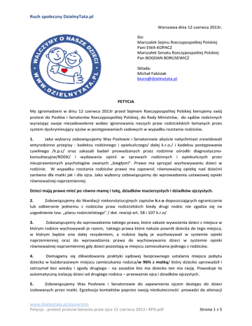 Petycja -protest przeciw ³amaniu praw ojca 12 czerwca 2013 i RPD