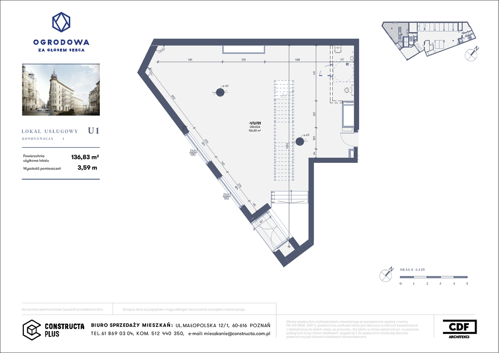 6 ,0 11 N 0° 481 315 488 177 411 117,00° ø 60 201 2 55 KO NDY G NACJA U1 USŁUGA 136,83 m² ø 60 -1 3,59 m 64 266 180 0 14 Wysokość pomieszczeń 136,83 m² 1496 0 27 4 18 Powierzchnia użytkowa lokalu 159 LOKAL U S ŁU GOW Y -1/U/01 243 0 27 4 18 266 180 95 1 15 N SKA L A 1 :1 25 0 Na warstwy wykończeniowe /posadzki przewidziano 2cm 1 Niniejsze dane są poglądowe i mogą odbiegać nieznaczenie od projektu realizacyjnego. BI UR O SPRZ EDAŻ Y M I E SZ K A Ń : UL. MA ŁOPOL SK A 12/ 1, 60-616 POZ N AŃ T E L. 61 869 03 04, K OM. 51 2 440 350, e-mail: [email protected] Obmiar powierzchni użytkowej lokalu mieszkalnego przeprowadzono zgodnie z normą PN-ISO 9836: 1997 tj. powierzchnia użytkowa lokalu jest obliczona w metrach kwadratowych z dokładnością do dwóch miejsc po przecinku, dla lokalu w stanie wykończonym, na poziomie podłogi (nie licząc listew cokołowych, progów itp.). Do powierzchni użytkowej wliczono powierzchnię pod ścianami działowymi demontowanymi. 2 3 4 5
