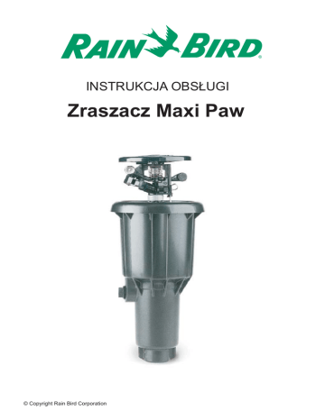 INSTRUKCJA OBS£UGI Zraszacz Maxi Paw © Copyright Rain Bird Corporation INSTRUKCJA INSTALACJI SPIS TREŒCI: Informacje ogólne Wskazówki dotycz¹ce instalacji Instalacja dysz Umieszczanie sprê¿yny Ustawianie sektora Zdejmowanie przykrywki INFORMACJE OGÓLNE Nie ma ¿adnych ustalonych kierunków regulacji sektora w zraszaczu Maxi-Paw. Pozwala to na maksymaln¹ wszechstronnoœæ w ustawianiu g³owicy na pionowym stojaku do monta¿u. Tak, wiêc mo¿na ustawiæ jakikolwiek sektor, zarówno pe³ny jak i wycinek ko³a. Ustawianie sektora zosta³o omówione w jednym z poni¿szych podrozdzia³ów. Maxi-Paw oferuje seriê siedmiu zamiennych dysz, zarówno w normalnej, jak i niskiej konfiguracji k¹tów. Wszystkie dysze s¹ dla Maxi-Paw uniwersalne i zosta³y omówione w jednym z poni¿szych podrozdzia³ów. WSKAZÓWKI DOTYCZ¥CE INSTALACJI Podobnie jak w przypadku innych produktów irygacyjnych, nale¿y je najpierw dok³adnie op³ukaæ przed rozpoczêciem instalacji. Jest to szczególnie wa¿ne w warunkach œrodowiskowych gdzie struktura gruntu jest bogata w ma³e kamienie. Wszystko, co przejdzie przez sito, zostanie równie¿ przepuszczone przez dyszê. Jednak¿e, bez w³aœciwego op³ukiwania odcinka w pobli¿u mocowania g³owicy, ma³e kamienie mog¹ utkn¹æ poni¿ej poziomu sita i przeszkadzaæ w jej prawid³owym funkcjonowaniu. Plastikowy materia³, u¿ywany do budowy wiêkszoœci zraszaczy, jest nara¿ony na dzia³anie chemicznych sk³adników wi¹¿¹cych, takich jak np. klej. Dlatego te¿ przy uszczelnianiu po³¹czeñ nale¿y u¿ywaæ wy³¹cznie taœmy teflonowej. © Copyright Rain Bird Corporation 2 Maxi-Paw ma szerok¹ powierzchniê ko³nierza wokó³ zewnêtrza kielicha. Obszar ten stanowi barierê dla materia³u, który wêdruje z powrotem do otworu w kielichu. Obszar ko³nierza powinien byæ usytuowany na najwy¿szym stopniu wysokoœci. Maxi-Paw mo¿e funkcjonowaæ zarówno ze spodnim jak i bocznym otworem wlotowym. Zatyczka musi byæ w przesuniêta do pozycji, która nie jest u¿ywana. Otwór spodni umo¿liwia stopniowanie pozycji od 3/4 " do 1/2" do zastosowania ze z³¹czkami o wiêkszych rozmiarach. Nale¿y pamiêtaæ, ¿e w przypadku zastosowania urz¹dzenia Seal-a-Matic, musimy u¿yæ otworu spodniego, aby urz¹dzenie uszczelniaj¹ce funkcjonowa³o prawid³owo. Zraszacz Maxi-Paw posiada kilka otworów odp³ywowych. Zapewniaj¹ one ³atwe ods¹czanie wody, która znajdzie siê w kielichu. INSTALACJA DYSZ Zraszacze Maxi-Paw dostarczane s¹ wraz ze standardowymi dyszami. Przy wymianie bie¿¹cej dyszy na inn¹ nale¿y wykonaæ nastêpuj¹ce czynnoœci: Aby przytrzymaæ wewnêtrzny zespó³ podczas wymiany dyszy mo¿na u¿yæ klucza do MaxiPaw RAIN BIRD #42064. Pod¹¿aj¹c za wskazówkami opisanymi poni¿ej w ³atwy sposób w³o¿ymy narzêdzie, aby przytrzymaæ zespó³ wewnêtrzny podczas pracy nad zraszaczem. © Copyright Rain Bird Corporation 3 Dwa razy ciê¿sze ramiê zablokuje drogê dostêpu do dyszy. Odci¹gn¹æ ramiê z pozycji spoczynkowej tak, by mo¿na by³o zobaczyæ, gdzie znajduje siê bie¿¹ca dysza. Przy pomocy kciuka i palca wywieramy nacisk na klapkê dyszy przeciwnie do ruchu wskazówek zegara. Dysza zostanie usuniêta z zamkniêtej pozycji i mo¿na j¹ ³atwo wyci¹gn¹æ w sytuacji, gdy dysza jest obrócona o 90°. Ustawiæ now¹ dyszê w taki sposób, aby obszerna powierzchnia ko³nierza znalaz³a siê na wierzchu otworu dyszy. Wepchn¹æ dyszê z powrotem do pozycji poprawnego osadzenia. Przekrêcaæ dyszê w kierunku zgodnym z ruchem wskazówek zegara do momentu, gdy us³yszymy klikniêcie, które oznacza, ¿e dysza przesunê³a siê do zamkniêtej pozycji. Dysze zamienne z niskim k¹tem wyraŸnie ró¿ni¹ siê wygl¹dem od tych, które posiadaj¹ œrubê regulacji promienia jako integraln¹ czêœæ korpusu. Niski k¹t © Copyright Rain Bird Corporation Normalny 4 Œruba regulacji promienia na ka¿dym z zestawów dysz pozwala na redukcjê promienia do 25%. Podczas ustawiania dyszy, wa¿ne jest by zanotowaæ po³o¿enie sprê¿yny ramienia i podregulowaæ sprê¿ynê, jeœli tego wymaga. Standardowy Maxi-Paw wyposa¿ony jest w sprê¿ynê w pozycji A. Tylko #6, #7, i 7# o niskim k¹cie wymagaj¹ zmiany pozycji sprê¿yny do pozycji B. Mniejsze naprê¿enie sprê¿yny pozwoli na lepsze wy³¹czanie zraszacza na tych dyszach o ma³ym przep³ywie. UMIESZCZANIE SPRʯYNY Poni¿sza tabela pomo¿e ustaliæ prawid³ow¹ pozycjê sprê¿yny: Rodzaj dyszy Normalna O niskim k¹cie Nr dyszy Kolor Pozycja 06 Czerwony B 07 Czarny B 08 Niebieski A 10 ¯ó³ty A 12 Be¿owy A 07 Czarny B 10 ¯ó³ty A © Copyright Rain Bird Corporation 5 Upewnij siê, ¿e sprê¿yna ramienia zraszacza jest we w³aœciwej pozycji. Dysze czerwona (#6) i czarna (#7) wymagaj¹ zmiany pozycji „A” do pozycji „B”. Sprê¿yna musi byæ we w³aœciwej pozycji, aby w³aœciwie wy³¹cza³a zraszacz. USTAWIANIE SEKTORA Maxi-Paw jest uniwersaln¹ g³owic¹ umo¿liwiaj¹c¹ dzia³anie pe³nosektorowe lub sektorowe na jednej g³owicy. Po zamocowaniu g³owicy, przesun¹æ wieczko, aby dostaæ siê do wewnêtrznego zespo³u zraszacza. Tkwi¹c poni¿ej dyszy i zespo³u sp³ukiwania ramienia, znajdziemy dwa przyciski regulacji umocowane poziomo do kielicha. Znajduje siê tu równie¿ mechanizm samoczynnego wy³¹czania umocowany prostopadle do przycisków regulacji. Dwie klapki regulacji umo¿liwiaj¹ ustawienie sektora poprzez proste usytuowanie ramion w ten sposób, ¿eby odwrotnoœæ sektora pojawi³a siê w odpowiednim miejscu. Ka¿da z klapek ma dwa przyciski. Naciœniêcie jednego z nich umo¿liwia przesuniêcie klapki w jednym kierunku, drugi przycisk przesunie j¹ w kierunku przeciwnym. Ustawiæ dwie klapki w wymaganym po³o¿eniu, w³¹czyæ dop³yw wody i wykonaæ ostateczn¹ drobn¹ regulacjê podczas pracy systemu. Jeœli oka¿e siê, ¿e zraszacz jest ustawiony na wy³¹czanie po z³ej stronie, po prostu przerzuciæ ramiê wy³¹czania, przesun¹æ je na inn¹ stronê klawisz