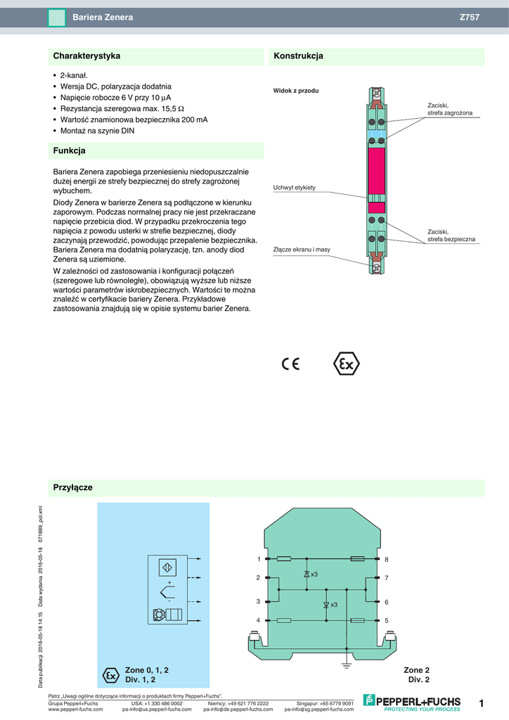 Z757 Bariera Zenera Przyłącze Konstrukcja