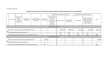 Data publikacji: 30.06.2016 Świadczenia uzyskane przez Przedstawicieli zawodów medycznych (PZM) i Organizacji ochrony zdrowia (OOZ) Koszty poniesione w związku z Wydarzeniami Dokładny adres głównego Imię i nazwisko miejsca prowadzenia działalności Kraj podstawowej działalności Umowy sponsorskie z OOZ/ stronami Numer Prawa Darowizny i trzecimi Wykonywania Zawodu dotacje dla OOZ wynaczonymi przez Opłaty rejestracyjne (opcjonalnie) OOZ w celu zarządzania wydarzeniami Koszty podróży i zakwaterowania Wynagrodzenia z tytułu usług i doradztwa Wynagrodzenia Wydatki dodatkowe uzgodnione w umowie dot. wynagrodzenia z tytułu świadczenia usług i doradztwa Suma PZM UDOSTĘPNIENIE ZBIORCZE Suma wartości Świadczeń uzyskanych przez Beneficjentów w PLN 181 187,53 526 597,24 Liczba Beneficjentów w udostępnieniu zbiorczym 405 400 29 12 100% 100% 100% 100% Procent liczby Beneficjentów uwzględnionych w udostępnieniu zbiorczym 214 734,00 18 233,00 940 751,77 100% OOZ UDOSTĘPNIENIE ZBIORCZE Suma wartości Świadczeń uzyskanych przez Beneficjentów w PLN 3562,63 Liczba Beneficjentów w udostępnieniu zbiorczym 2 2 100% 100% Procent liczby Beneficjentów uwzględnionych w udostępnieniu zbiorczym 3562,63