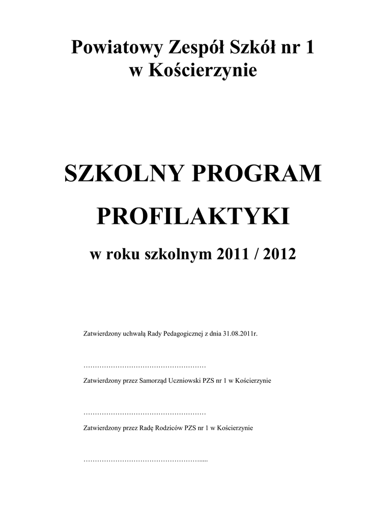 program profilaktyki - Powiatowy Zespół Szkół nr 1 w Kościerzynie
