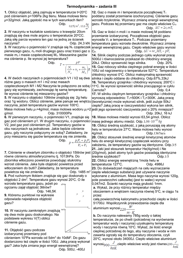 Termodynamika – zadania III