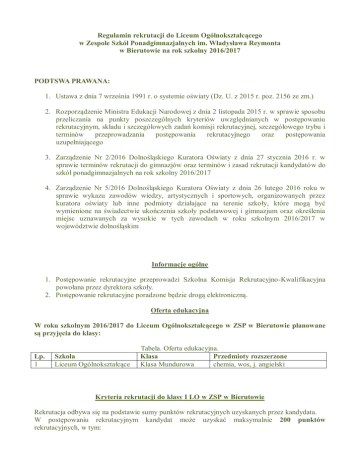 Regulamin rekrutacji-LO - Zespół Szkół Ponadgimnazjalnych w