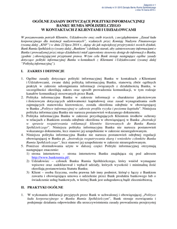 ogólne zasady dotyczące polityki informacyjnej banku rumia