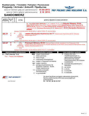 kursuje 15-23 XII 2013; 25 XII 2013-6 I 2014 FH-Y; 7 I-8 III 2014; objaśnienia znakówSymbols