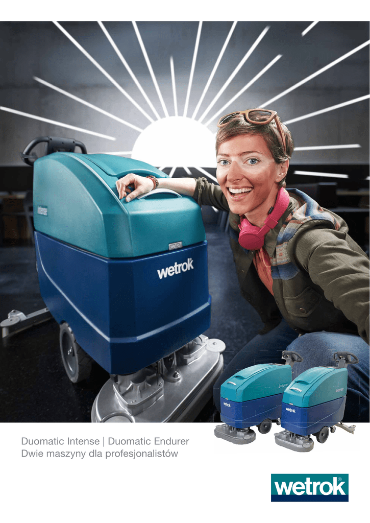 Duomatic Intense | Duomatic Endurer Dwie maszyny dla profesjonalistów Duomatic Intense i Endurer: intensywne czyszczenie, doskonałe efekty Duomatic Intense to idealny sprzęt dla profesjonalnych firm sprzątających. Jego obsługę ułatwia prosty i czytelny wyświetlacz dotykowy, dzięki któremu operator intuicyjnie prowadzi maszynę. Kolejną zaletą jest zbiornik na wodę o pojemności 55 litrów oraz regulowany w trakcie pracy dyszel. Prosta obsługa: komfortowy wyświetlacz dotykowy Duży, kolorowy, czytelny. Sześć przycisków zapewnia natychmiastową gotowość maszyny do pracy. Umożliwiają sterowanie ilością wody, dociskiem szczotek i dozowaniem, kontrolę stanu naładowania akumulatora oraz obsługę licznych funkcji, w tym trybu ECO. Wszystko pod kontrolą: ergonomiczny dyszel Regulowany dyszel zapewnia pracę zawsze w optymalnej pozycji, ponieważ można go przestawiać również w trakcie czyszczenia. Z mechanizmem równoległowodowym wyświetlacz pozostaje w polu widzenia zawsze pod optymalnym kątem. Po złożeniu do góry dyszel umożliwia bezproblemowe przechowywanie maszyny. Łatwe tankowanie: złącze węża z funkcją automatycznego wyłączania Koniec wody w Duomatic to żaden problem: wystarczy jednym kliknięciem przyłączyć wąż do kranu i można zacząć napełnianie. Po napełnieniu zbiornika dopływ wody zatrzymuje się automatycznie. Bez mokrych śladów: listwa ssąca z technologią Power Whirl Zobacz Duomatic Intense i Endurer Wetrok w akcji. Obejrzyj film Czysta i natychmiast sucha podłoga: Z opatentowaną, innowacyjną technologią Power Whirl to standard. Ssawka wytwarza optymalny wir ssący, który błyskawicznie i bez śladu osusza powierzchnię, redukując przy tym zużycie energii. Duomatic Endurer to sprzęt idealny do dużych powierzchni: wyposażony jest w zbiornik na wodę o pojemności 80 l. Wystarczy raz zatankować, by za jednym razem wyszorować na połysk dużą powierzchnię. Napęd jezdny w Duomatic Intense i Endurer sprawia, że modele te poruszają się niemal siłą własną. Nic dziwnego, że praca bez wysiłku posuwa się na przód. Z dostępnym opcjonalnie akumulatorem litowym oba modele bez problemu pracują przez bardzo długi czas bez ładowania. Wybór trybów jednym przyciskiem: ECO lub Power 2 h 20 min 2% Szorowarki Duomatic są elastyczne i można je łatwo dostosować do stopnia zabrudzenia. Do codziennego czyszczenia służy energooszczędny tryb ECO. W przypadku większych zabrudzeń można pracować w trybie Power Shot. Ani za dużo, ani za mało: po prostu w sam raz Automatyczny system dozujący zapewnia optymalne stężenie detergentu w wodzie. Efekt: czysta podłoga bez smug. I co równie ważne: bez zbędnych obciążeń dla portfela i środowiska. Szybkie ładowanie: akumulatory litowo-żelazowo-fosforanowe Napęd modeli Duomatic Intense i Endurer stanowią akumulatory litowożelazowo-fosforanowe, które zapewniają stałą wysoką moc. Akumulatory litowe Wetrok są zaprojektowane na cały okres użytkowania maszyny (nie wchodzą w zakres dostawy). Ergonomia i wygoda: obsługa szczotek jednym przyciskiem Z Duomatic Intense można jednym przyciskiem mocować szczotki i zdejmować je po zakończonej pracy. Prościej już być nie może. Tym samym można zapomnieć o brudnych rękach od zużytych padów i szczotek. • • • • • • Duży kolorowy wyświetlacz: szybka gotowość do pracy i zawsze wszystko pod kontrolą Ruchomy dyszel: regulowany również podczas pracy bez ograniczania widoczności wyświetlacza Listwa ssąca w technologii Wetrok Power Whirl: natychmiastowa suchość podłóg Wysokiej jakości akumulatory litowe: ekologiczne i tak żywotne jak sama maszyna Automatyczne szczotki: mocowane i zdejmowane naciśnięciem przycisku Najbardziej kompaktowe maszyny w swojej klasie Intense 50/60 Model Intense Dosing 50/60 Standard SL Standard SL Endurer 60/75 Endurer Dosing 60/75 Standard SL Standard SL Wyposażenie podstawowe Ładowarka wewnętrzna Komplet dysz ssących Panel szczotek System dozujący (komplet) Wyposażenie dodatkowe Lampa bezpieczeństwa (SL) Dane techniczne Teoret. wydajność czyszczenia powierzchni Szerokość robocza Długość całkowita Szerokość całkowita Szerokość ssawki Wysokość całkowita Waga maks. (z akumulatorami) Zbiornik na świeżą wodę Liczba szczotek Nacisk szczotek Prędkość obrotowa szczotek Moc silnika szczotek Prędkość jazdy do przodu Prędkość jazdy do tyłu Maks. zdolność pokonywania wzniesień Min. koło skrętu Moc turbiny ssącej Rodzaj napędu Moc całkowita Poziom hałasu Dozowanie Akumulator Czas pracy 41.6 Ah (litowy)1) Czas pracy 76 Ah (ołowiowy) Czas pracy 83.2 Ah (litowy) Czas pracy 105 Ah (ołowiowy) Czas pracy 124.8 Ah (litowy) Czas pracy 166.4 Ah (litowy) 2500/3000 m2/h 50 / 60 cm 132/135.5 cm 56,5/67,5 cm 79/89 cm 118 cm 179/180 kg 55 l 2 sztuki 43 kg (do 0,63 N/cm2) 200 U/min 2 × 300 W 5 km/h 2,5 km/h 8% 135 cm 460 W Silnik jazdy 900 W 64 dB(A) – 0,5 – 5,0 % Tryb normalny do 1 h do 1 h do 2 h do 1.5 h do 3 h do 4 h 3000/3750 m2/h 60/75 cm 140/144 cm 67,5/82 cm 89/96 cm 118 cm 189/190 kg 80 l 2 sztuki 53 kg (do 0,49 N/cm2) 200 U/min 2 × 300/2 × 450 W 5 km/h 2,5 km/h 8% 140/150 cm 460 W Silnik jazdy 900 W 66 dB(A) – 0,5 – 5,0 % Tryb ECO do 1.5 h do 1.5 h do 3 h do 2 h do 4.5 h do 6 h 1) Redukuje nacisk szczotek na wykładzinach o wyraźnej strukturze oraz na wzniesieniach >2% www.wetrok.com Wetrok AG Steinackerstrasse 62, CH-8302 Kloten, Tel. +41 43 255 51 51, Fax +41 43 255 53 79 Wetrok Austria GmbH Deutschstrasse 19, A-1230 Wien, Tel. 0800 20 48 68, Fax 0800 20 48 78 Wetrok GmbH Maybachstrasse 35, D-51381 Leverkusen, Tel. +49 2171 398-0, Fax +49 2171 398-100 Wetrok Polska S.A. ul. Ła¸czyny 4, PL-02-820 Warszawa, Tel. +48 22 331 20 50, Fax +48 22 331 20 60 Wetrok AB Bergkällavägen 32, SE-192 79 Sollentuna, Tel. +46 8 444 34 00, Fax +46 8 444 34 01 © Copyright by Wetrok AG, 05/2016 Duomatic Intense i Endurer: 