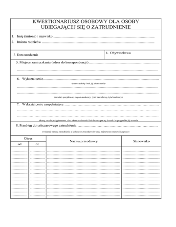 kwestionariusz osobowy dla osoby ubiegajacej się o zatrudnienie