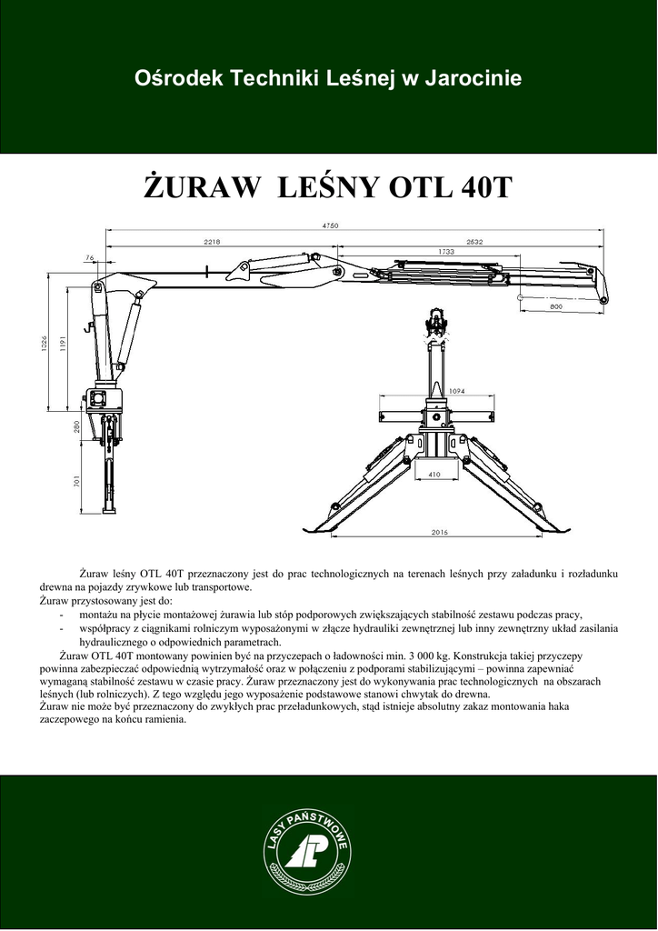 żuraw leśny otl 40t - Ośrodek Techniki Leśnej w Jarocinie