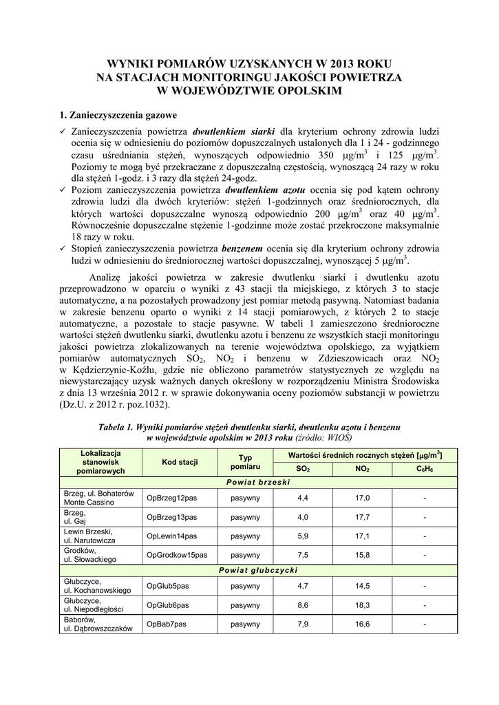 Wyniki pomiarów jakości powietrza 2013