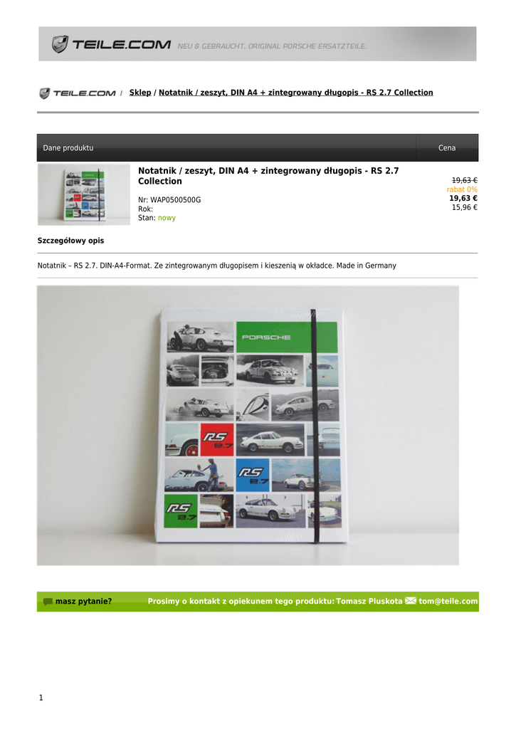 Sklep / Notatnik / zeszyt, DIN A4 + zintegrowany długopis - RS 2.7 Collection Dane produktu Cena Notatnik / zeszyt, DIN A4 + zintegrowany długopis - RS 2.7 Collection Nr: WAP0500500G Rok: Stan: nowy 19,63 € rabat 0% 19,63 € 15,96 € Szczegółowy opis Notatnik – RS 2.7. DIN-A4-Format. Ze zintegrowanym długopisem i kieszenią w okładce. Made in Germany masz pytanie? 1 Prosimy o kontakt z opiekunem tego produktu: Tomasz Pluskota [email protected] 2