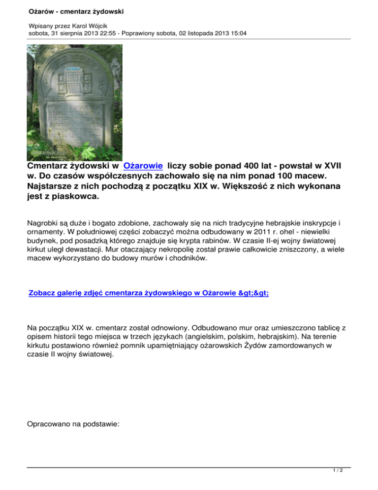 Ożarów - cmentarz żydowski - swietokrzyskie.org.pl
