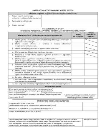 karta oceny oferty w gminie miasta sopotu stanowisko komisji