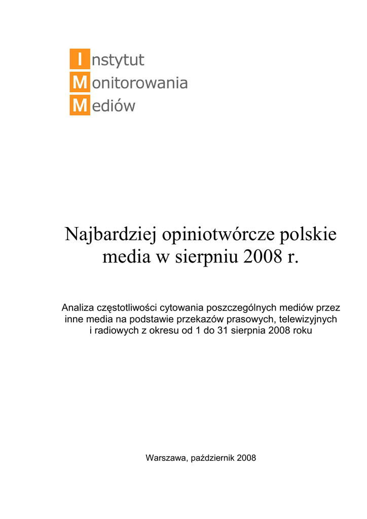 Najbardziej opiniotwórcze polskie media w sierpniu 2008 r.