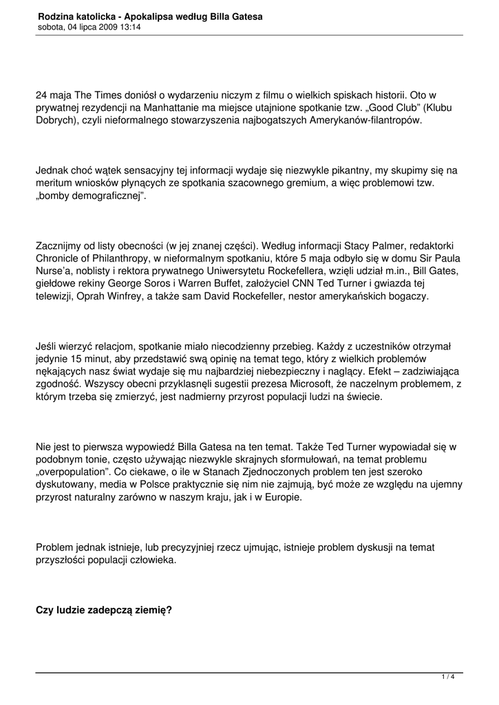 Rodzina katolicka - Apokalipsa według Billa Gatesa