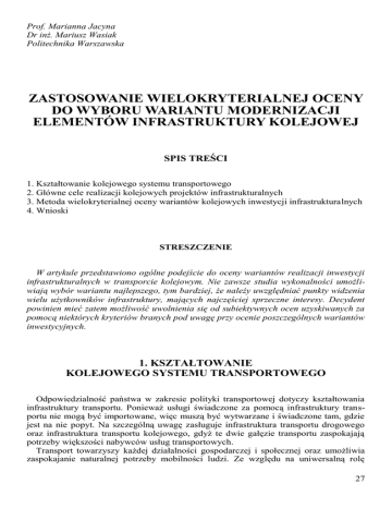 3. Metoda wielokryterialnej oceny wariantów kolejowych inwestycji infrastrukturalnych