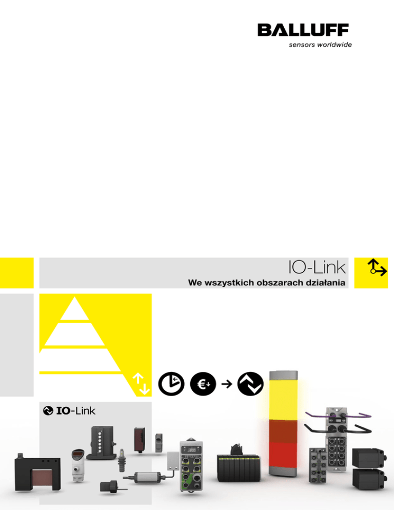 IO-Link We wszystkich obszarach działania IO-Link Bazująca na ponad 50-ciu latach doświadczeń, firma Balluff jest wiodącym producentem sensoryki z własną linią produktów sieciowych do każdego obszaru automatyzacji. Firma Balluff, z siedzibą w Niemczech, posiada międzynarodową sieć 54 oddziałów i przedstawicielstw. Balluff jest wszechstronnym dostawcą oferującym szeroką gamę produktów pochodzących z jednego źródła. Wprowadza ciągłe innowacje, wykorzystuje najnowocześniejsze technologie oraz gwarantuje najwyższą jakość i niezawodność. To nie wszystko: firmę Balluff charakteryzuje również wyjątkowa orientacja na klienta, niestandardowe rozwiązania, szybka obsługa na całym świecie i wysoki poziom wsparcia klienta. 2 Czujniki rozpoznające obiekty, najnowocześniejsza technologia pomiaru odległości, innowacyjna technologia RFID, czy też nowe rozwiązania w zakresie komunikacji przemysłowej: Balluff reprezentuje różnorodność technologiczną z najróżniejszymi zasadami działania i oferuje innowacyjne rozwiązania techniczne najwyższej jakości. Komunikacja na każdym poziomie IO-Link zwiększa wydajność 4 Większa wydajność, niższe koszty IO-Link oszczędza czas i pieniądze 6 IO-Link W całym procesie produkcji 8 Monitorowanie ciśnienia w procesie produkcji Czujniki ciśnienia 10 Monitorowanie położenia mocowania w centrum obróbczym 12 Pomiar drogi i odległości Kompleksowe rozwiązania identyfikacyjne do systemów transportu Identyfikacja przemysłowa www.balluff.pl Więcej informacji na naszej stronie internetowej! 14 Monitorowanie pozycji w procesie montażu Detekcja obiektów 16 Dwukierunkowa transmisja danych i energii Sieci przemysłowe i połączenia 18 Ekonomiczna technika połączeń Sieci przemysłowe i połączenia 20 Prosta wizualizacja stanów roboczych Sieci przemysłowe i połączenia 22 Usługi związane z IO-Link Systemy i usługi 24 Szybciej do celu dzięki IO-Link Opis aplikacji 26 3 PLC Master sieciowy IO-Link Urządzenia IO-Link Standardowe czujniki 4 Komunikacja na każdym poziomie IO-Link zwiększa wydajność Czym jest IO-Link? IO-Link to pierwsza na świecie zestandaryzowana technologia IO (EC 61131-9) umożliwiająca komunikację od układu sterowania aż do najniższego elementu automatyki. Ten uniwersalny interfejs to niezależne od sieci przemysłowej połączenie typu „punkt-punkt”, które do komunikacji wykorzystuje standardowy nieekranowany przewód. Co oferuje IO-Link? IO-Link przekazuje wszystkie sygnały z czujników do układu sterowania i przesyła w odwrotnym kierunku dane z układu sterowania do czujników i elementów wykonawczych. Z rewolucyjnymi wynikami. IO-Link integruje wszystkie czujniki do poziomu sieci przemysłowych. Umożliwia kompleksową, ciągłą diagnostykę oraz zautomatyzowaną parametryzację urządzeń z interfejsem IO-Link z poziomu z układu sterowania. Instalacja jest przy tym bardzo prosta: wystarczy nieekranowany przewód trójżyłowy o długości do 20 m, aby podłączyć czujniki i elementy wykonawcze. Podłączenie jest zestandaryzowane dla wtyczek M5, M8 lub M12. IO-Link upraszcza całą topologię sieci. Czujniki/elementy wykonawcze lub koncentratory sygnałów z interfejsem IO-Link podłączane są przez Master IO-Link do dowolnej sieci przemysłowej. Moduł Master jest wyposażony w kilka portów IO-Link, dzięki czemu może on zbierać dane z różnych urządzeń, co redukuje ilość sprzętu. Koncentratory sygnałów są bowiem w stanie zbierać i przekazywać sygnały przełączające nawet z 16 czujników binarnych. Podłączenie tych koncentratorów do modułu Master IO-Link z 8 portami umożliwia przesyłanie danych nawet ze 136 czujników. Dla każdego portu Mastera można wybrać tryb przełączający (tryb SIO do przetwarzania sygnałów binarnych) lub tryb komunikacji IO-Link, aby w ten sposób przetwarzać informacje z wszystkich czujników. Master IO-Link może przy tym przekazywać duże ilości danych w krótkim czasie. Standardowo do dyspozycji jest do 32 bajtów danych procesowych na cykl. Aby przy prędkości 230 kbaud wymienić 2 bajty danych procesowych i 1 bajt danych dodatkowych między Masterem IO-Link a urządzeniem, wymagane jest 400 μs. www.balluff.pl 5 Większa wydajność, niższe koszty IO-Link oszczędza czas i pieniądze IO-Link, to wszystko czego potrzebujesz aby Twój układ automatyki był jeszcze efektywniejszy. To dlatego, że IO-Link poprzez optymalizację gwarantuje wzrost wydajności oraz obniżenie kosztów w całym procesie produkcji. Jednolite nieskomplikowane okablowanie, rozbudowana diagnostyka i centralna parametryzacja z poziomu układu sterowania zapewniają uniwersalne i elastyczne działanie. 6 Uproszczenie instalacji Standardowy, trójżyłowy przewód to wszystko czego potrzebujesz aby w pełni korzystać z możliwości jakie daje IO-Link. Nawet w przypadku skomplikowanych urządzeń. Pozwala to na szybką i wygodną integrację interfejsu IO-Link z siecią przemysłową. Cyfrowa komunikacja to gwarancja bezzakłóceniowej pracy bez konieczności używania drogiego, ekranowanego przewodu. Dzięki koncentratorom IO-Link w prosty i niedrogi sposób łączymy standardowe czujniki z siecią przemysłową. Pojedynczy koncentrator może bowiem przekazywać sygnały nawet z 16 czujników binarnych. Komunikację z siecią przemysłową zapewnia Master IO-Link, który może posiadać do ośmiu portów IO-Link. Dzięki temu za pomocą jednego modułu można podłączyć do układu sterowania osiem różnych urządzeń IO-Link, co znacznie zmniejsza wielkość instalacji. Serwis w zależności od potrzeb Ciągła diagnostyka danych całego procesu pozwala na wydłużenie okresów międzyserwisowych. IO-Link umożliwia nieprzerwaną diagnostykę, dzięki której urządzenia i maszyny można konserwować znacznie rzadziej. Możliwe jest także wczesne wykrywanie błędów. Wszystkie kluczowe parametry procesu są bowiem