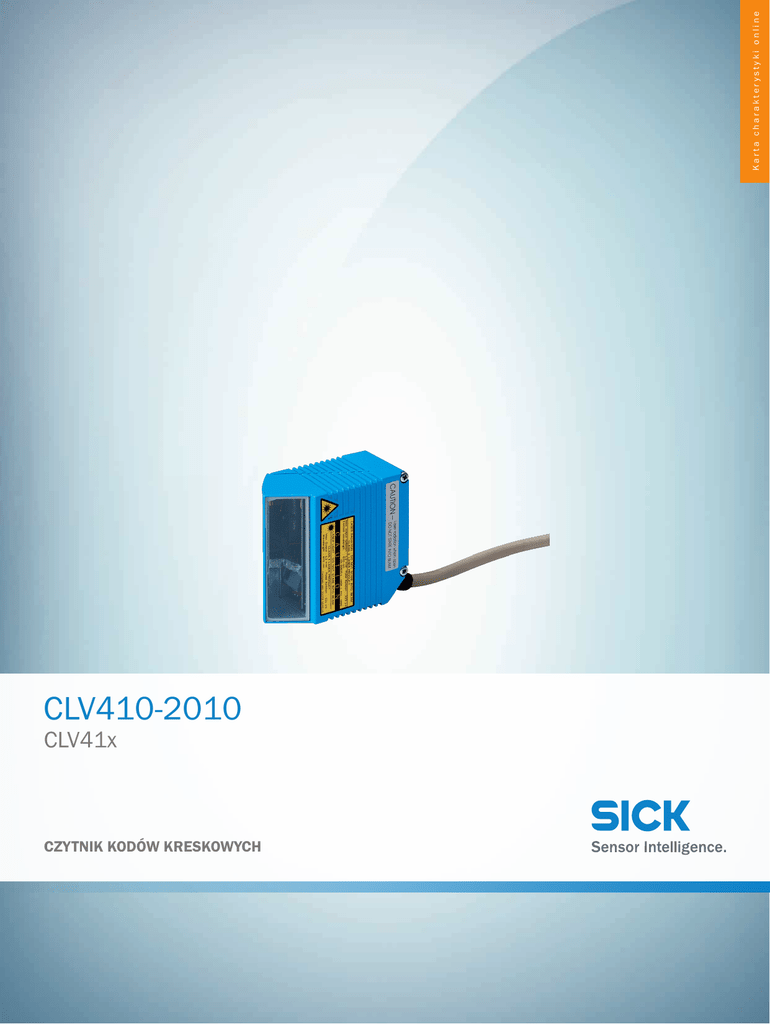 Karta charakterystyki online CLV410-2010 CLV41x CZYTNIK KODÓW KRESKOWYCH CLV410-2010 | CLV41x CZYTNIK KODÓW KRESKOWYCH A B C D E F H I J K L M N O P Q R S T Informacje do zamówienia Typ Nr artykułu CLV410-2010 więcej wersji urządzeń i akcesoriów 1017534 www.sick.com/CLV41x Szczegółowe dane techniczne Cechy Wersja Mid Range Typ przyłącza Standard Okno odczytu Z boku (105°) Wersja skanera Skaner liniowy Ognisko Stała ogniskowa Źródło światła Widzialne światło czerwone (Laser, 670 nm) MTBF 20.000 h Klasa lasera 2 (DIN EN 60825-1) Kąt otwarcia ≤ 50° Częstotliwość skanowania 200 Hz ... 800 Hz Rozdzielczość kodu 0,2 mm ... 1 mm Odległość odczytu 50 mm ... 380 mm 1) 1) Szczegóły — patrz charakterystyki zasięgu. Wydajność Typy kodu kreskowego Wszystkie powszechnie stosowane typy kodów, Code 39, Code 128, Code 93, Codabar, GS1-128 / EAN 128, UPC / GTIN / EAN, 2/5 Interleaved, Pharmacode Stosunek szerokości kresek 2:1 ... 3:1 Liczba kodów na skan 1 ... 3 Liczba kodów w polu odczytu 1 ... 10 Liczba znaków w polu odczytu 100 Liczba odczytów wielokrotnych 1 ... 99 Interfejsy ✔, AUX (tylko RS-232) Szeregowa (RS-232, RS-422/-485) Funkcja Host, AUX Prędkość przesyłania danych 300 Baud ... 57.600 Baud, AUX: 9600 bodów Wejścia przełączające 2 („Czujnik 1”, „Czujnik 2”) Wyjścia przełączające 3 („Wynik 1”, „Wynik 2”, „Wynik 3”) Taktowanie odczytu Automatyczne wyzwalanie czytnika (reflector polling), Wejście przełączające “Sensor 1”, wolne, Interfejs szeregowy Wskazania optyczne 4 LEDs (Wskaźniki funkcji) 2 ROZWIĄZANIA AUTOMATYCZNEJ IDENTYFIKACJI | SICK Karta charakterystyki online | 2016-03-11 19:24:12 Informacje mogą ulec zmianie bez powiadomienia CLV410-2010 | CLV41x CZYTNIK KODÓW KRESKOWYCH Sygnalizacja dźwiękowa Brzęczyk (można wyłączyć, przypisana funkcja wyświetlania wyników) Mechanika/elektryka Przyłącze elektryczne 1 x Wtyk 15-pinowy D-Sub-HD (0,9 m) Napięcie robocze 5 V DC ... 30 V DC 1) Pobór mocy 3 W Obudowa Cynkowy odlew ciśnieniowy, nie zawiera substancji mogących wpływać negatywnie na powłoki lakiernicze Kolor obudowy Jasnoniebieski (RAL 5012) Stopień ochrony IP 65 (DIN 40 050) Klasa ochrony III (IEC 1010-1) Masa 320 g, z przewodem podłączeniowym Wymiary (dł. x szer. x wys.) 72 mm x 62,7 mm x 35,2 mm 1) Certyfikat UL przy zastosowaniu zasilacza sieciowego Class 2 (przetestowany zgodnie z UL 1310) Dane dotyczące otoczenia Kompatybilność elektromagnetyczna (EMC) EN 61000-6-3 / EN 61000-6-2 Odporność na drgania IEC 68-2-6 Test FC Odporność na wstrząsy IEC 68-2-27 Test EA Temperatura otoczenia pracy 0 °C ... +40 °C Temperatura składowania –20 °C ... +70 °C Dopuszczalna względna wilgotność powietrza ± 90 %, bez kondensacji Odporność na światło zewnętrzne 2.000 lx, na kodzie kreskowym Kontrast druku kodu kreskowego (PCS) ≥ 60 % Ogólne wskazówki Cykl życia produktu 2016-03-11 19:24:12 | Karta charakterystyki online Informacje mogą ulec zmianie bez powiadomienia Produkt wycofany ROZWIĄZANIA AUTOMATYCZNEJ IDENTYFIKACJI | SICK 3 CLV410-2010 | CLV41x CZYTNIK KODÓW KRESKOWYCH A B C D E F H I J K L M N O P Q R S T Rysunek wymiarowy (Wymiary w mm) CLV41x/42x z boku 4 ROZWIĄZANIA AUTOMATYCZNEJ IDENTYFIKACJI | SICK Karta charakterystyki online | 2016-03-11 19:24:12 Informacje mogą ulec zmianie bez powiadomienia CLV410-2010 | CLV41x CZYTNIK KODÓW KRESKOWYCH Wykres pola odczytu Reading field height in mm (inch) 200 (7.87) 150 (5.91) 100 (3.94) 50 (1.97) a b c d 0 –50 (–1.97) –100 (–3.94) –150 (–5.91) –200 (–7.87) 0 100 200 300 400 (3.94) (7.87) (11.81) (15.75) Reading distance in mm (inch) Resolution a: 0.20 mm (7.9 mil) b: 0.35 mm (13.8 mil) c: 0.50 mm (19.7 mil) d: 1.00 mm (39.4 mil) Zalecane akcesoria więcej wersji urządzeń i akcesoriów www.sick.com/CLV41x Krótki opis Typ Nr artykułu Uchwyt montażowy 2020077 CDB410-001 1023813 CDM410-0001 1025361 Kątowniki mocujące i płytki mocujące Kątownik mocujący, mały, z materiałami mocującymi Błąuły Mały moduł przyłączeniowy do CLV41x Moduł przyłączeniowy do CLV41x 2016-03-11 19:24:12 | Karta charakterystyki online Informacje mogą ulec zmianie bez powiadomienia ROZWIĄZANIA AUTOMATYCZNEJ IDENTYFIKACJI | SICK 5 Folha de dados on-line Sobre a SICK A SICK é um dos principais fabricantes de sensores e soluções inteligentes para aplicações industriais. Uma gama de serviços e produtos exclusiva forma a base perfeita para controlar de forma segura e eficiente os processos para proteger as pessoas contra acidentes e evitar danos ao meio ambiente. Nós temos uma grande experiência nas mais diversas áreas. É por isso que podemos fornecer, com os nossos sensores inteligentes, o que os nossos clientes precisam. Em centros de aplicação na Europa, Ásia e América do Norte, as soluções de sistema são testadas e otimizadas especialmente para os nossos clientes. Isto tudo nos torna um fornecedor confiável e um parceiro de desenvolvimento de projetos. Inúmeros serviços completam a nossa oferta: o SICK LifeTime Services oferece suporte durante toda a vida útil da máquina e garante a segurança e a produtividade. Isto para nós significa “Sensor Intelligence.” No mundo inteiro, perto de você: Pessoas de contato e outros locais de produção - www.sick.com SICK AG |Waldkirch|Germany|www.sick.com