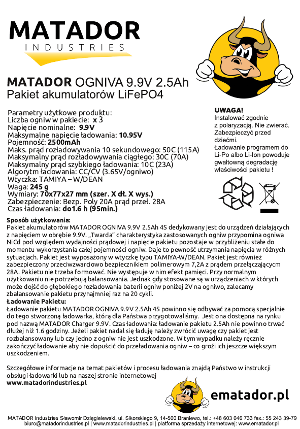 Instrukcja/Opis MATADOR OGNIVA 9.9V 2500mAh