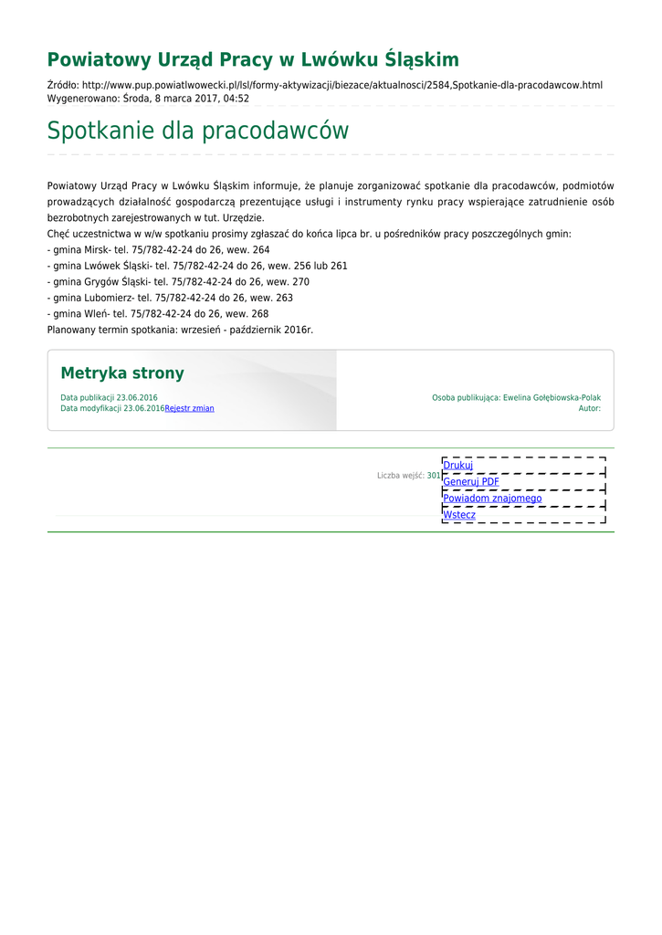 Spotkanie dla pracodawców - Powiatowy Urząd Pracy w Lwówku