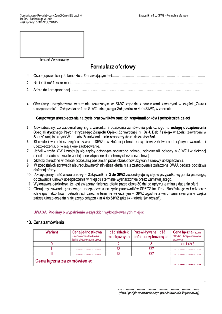 Formularz ofertowy - Specjalistyczny Psychiatryczny Zespół Opieki