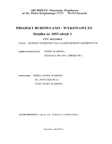 PROJEKT BUDOWLANO - WYKONAWCZY Działka nr 1053 obręb 1