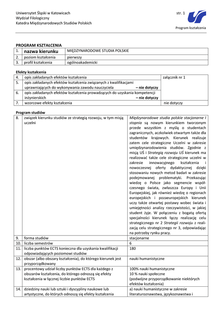 Program kształcenia - Katedra Międzynarodowych Studiów Polskich